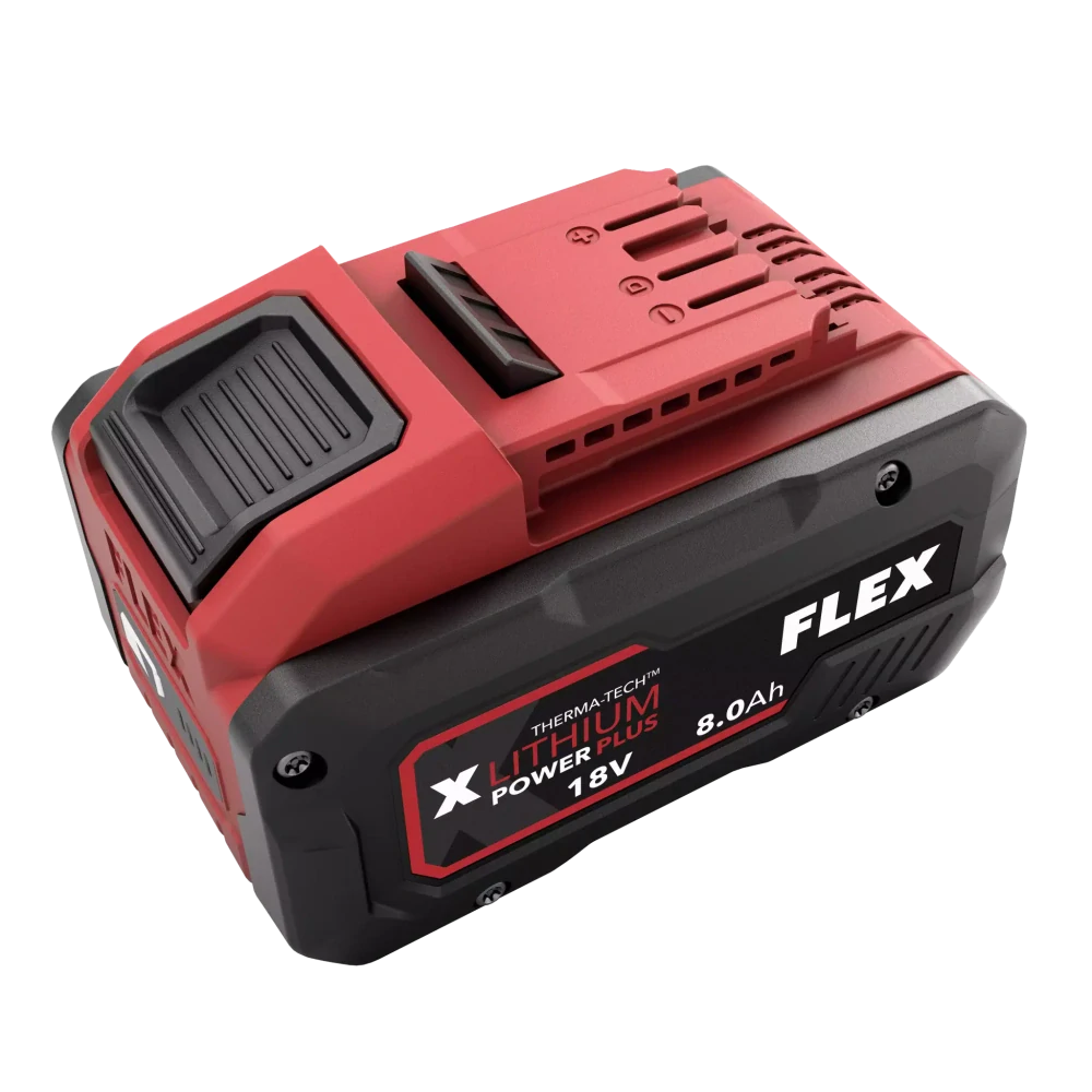 Silný a výkonný akumulátor 8,0 Ah Li-Ion Power Plus 18 V. Moderní technologie článků dosahuje výrazného zvýšení výkonu i doby chodu, díky čemuž je tato baterie ideální pro silné stroje, na které je kladen nárok na vyšší vybíjecí proud a delší provozní dobu na pracovišti.. Patentovaná technologie Therma-Tech absorbuje teplo a chrání tak články akumulátoru, čímž výrazně prodlužuje životnost a účinnost baterie. Elektronický řídicí systém (EMS) zajišťuje permanentní komunikaci mezi strojem a akumulátorem a optimalizuje jejich výkon při zachování zabezpečení celého systému. Měkký povrch krytu zajišťuje dokonalé uchopení při aplikaci. Integrovaná ochrana nabíjení a vybíjení, ochrana proti prachu a stříkající vodě a přehledné zobrazení stavu nabití doplňují akumulátor FLEX 18 V 8,0 Ah.