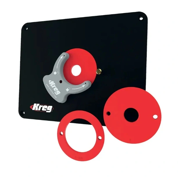 Deska je vybavena redukčními kroužky Level-Loc, které Vám umožňují snadno změnit velikost otvoru kolem frézy. Kroužky namontujete na desku pomocí dodávaného klíče.