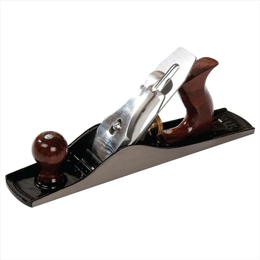 Tělo hoblíku je z šedé litiny s rukojeťi z palisandru, ovládací prvky z mosazi.