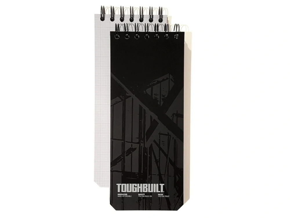 Medium Grid Notebooks v dvojbalení od ToughBuilt jsou vyrobeny pro nejnáročnější prostředí – s odolnými plastovými deskami, masivními kovovými kroužky a pevnými zády které zajišťují stabilní podložku při psaní v rukavicích, ve stoje i na koleni.