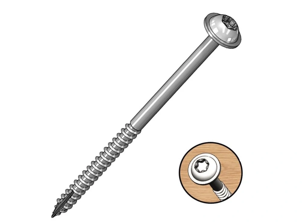 Díky hlavě Torx T20 a integrované podložce vám šrouby pro kapsové spoje umožní silné utahování bez rizika vybočení nebo poškození materiálu. Spoje drží pevně, jako by byly součástí dřeva.