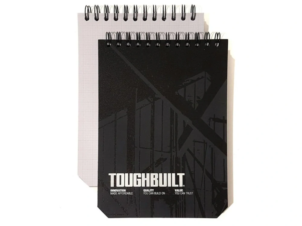 Toughbuilt - 2 x velké čtverečkované kroužkové poznámkové bloky s tvrdými deskami pro pohodlné psaní.