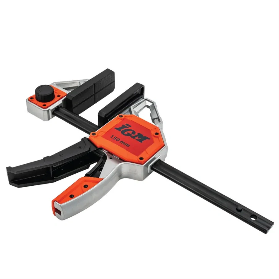 IGM ALU Rychloupínací svěrka je určená pro profesionály i kutily, kteří potřebují ve své dílně robustní truhlářskou svěrku pro větší zatížení. Čelisti svěrky s hloubkou 95 mm jsou vyrobené z hliníku a mají velké podložky o rozměru 90x36 mm z měkkého plastu. Vodící tyč 6x19 mm je vyrobena z uhlíkové oceli. Svěrka je vybavena páčkou pro rychloupínání a odnímatelnou čelistí pro přeměnu na rozpěrku pomocí otočného tlačítka. Maximální upínací síla až 140 kg.