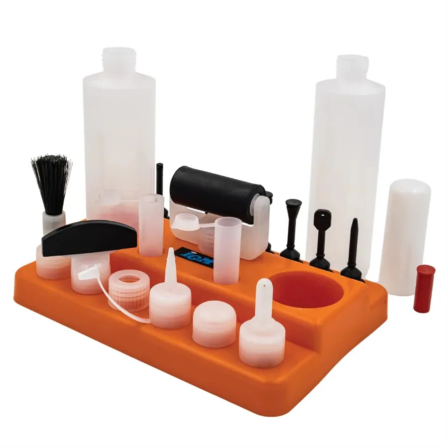 IGM Sada pro nanášení lepidla s třinácti různými nástavci vám usnadní lepení dřevěných dílců, ať už frézovaných nebo při spojování pomocí kolíků či lamel. Kromě těchto nástavců v sadě naleznete 2 lahve na libovolné lepidlo, 2 víčka na nástavce, víčko na lahev a praktický stojánek, na kterém si všechny části můžete uložit. Závit nástavců je kompatibilní s plastovou lahví Titebond 118 ml a 237 ml. Všechny nástavce tak můžete našroubovat přímo na lahev Titebond lepidla.