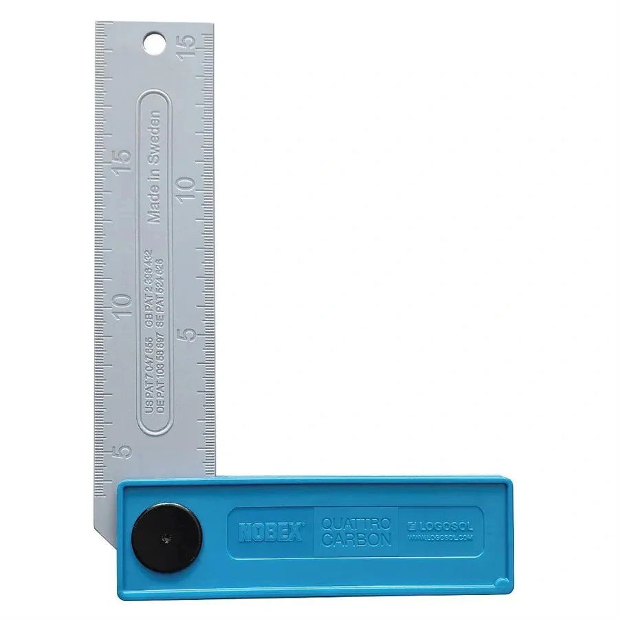 Nobex Quattro Carbon je skládací úhlové pravítko se třemi polohami, snadno se otevírá a zavírá a je ideální do každé kapsy tesaře nebo truhláře díky své nízké hmotnosti jen 55 g. Přesnost nastavení úhlů je +/-0,08°. Pravítko z tvrzeného plastu má oboustranné měřítko, na jedné straně v mm, na druhé v palcích. Mechanismus nastavení úhlů byl testován na 10.000 skládacích cyklech bez ztráty přesnosti. Přesné úhlové pravítko pro řemeslníky a kutily. Vyrobeno ve Švédsku.