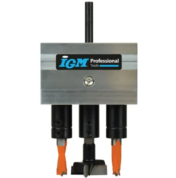 Revoluční vrtací přípravek se skládá ze stojanu a 8 typů vrtacích hlav, které lze na stojan namontovat. Můžete tak vrtat otvory pro závěsy Hettich, Blum, Mepla, Grass, FGV, pro malé závěsy 26mm, pro okenní kliky nebo použít hlavu s 5 vřeteny s roztečí 32mm pro vrtání děr pro kolíky či nosiče polic. Použití s ruční vrtačkou nebo na stojanových vrtačkách. Pro mazání použijte olej Mobil SHC100.